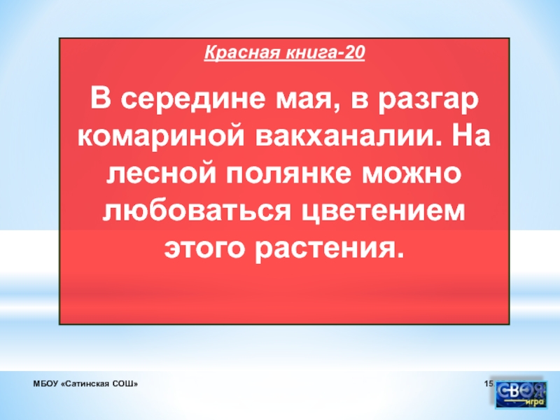 15.05.2016МБОУ «Сатинская СОШ»Красная книга-20В середине мая, в разгар комариной вакханалии. На лесной полянке можно любоваться цветением этого