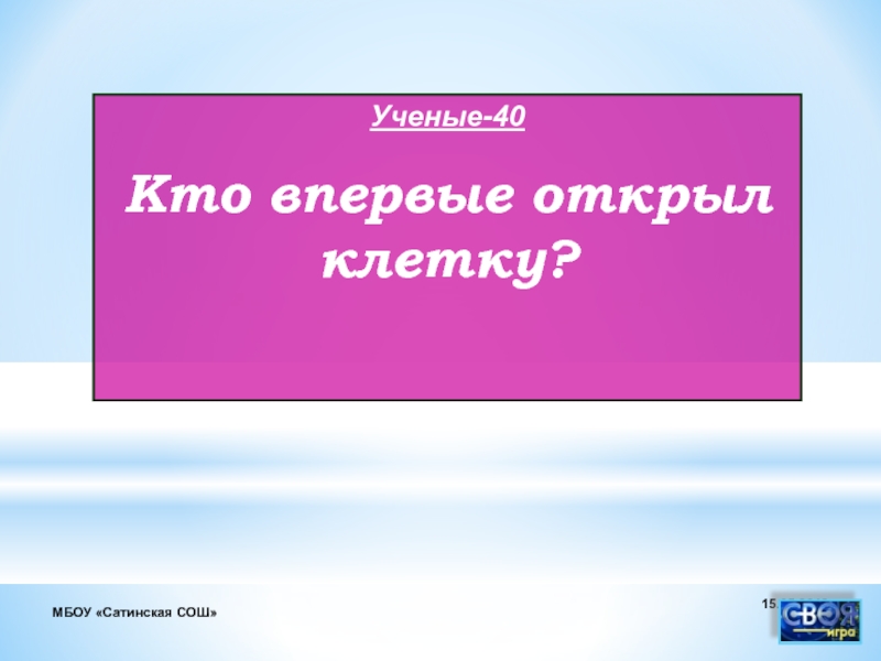 15.05.2016МБОУ «Сатинская СОШ»Ученые-40Кто впервые открыл клетку?