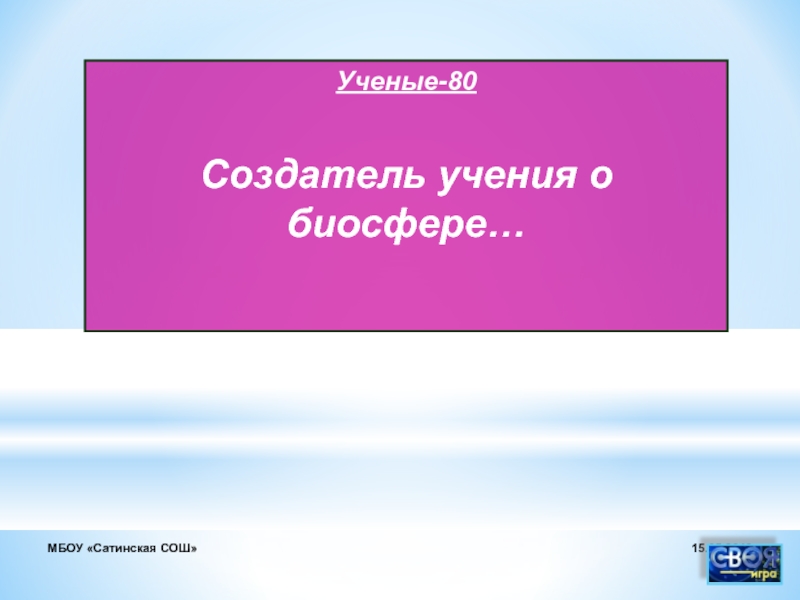 15.05.2016МБОУ «Сатинская СОШ»Ученые-80Создатель учения о биосфере…