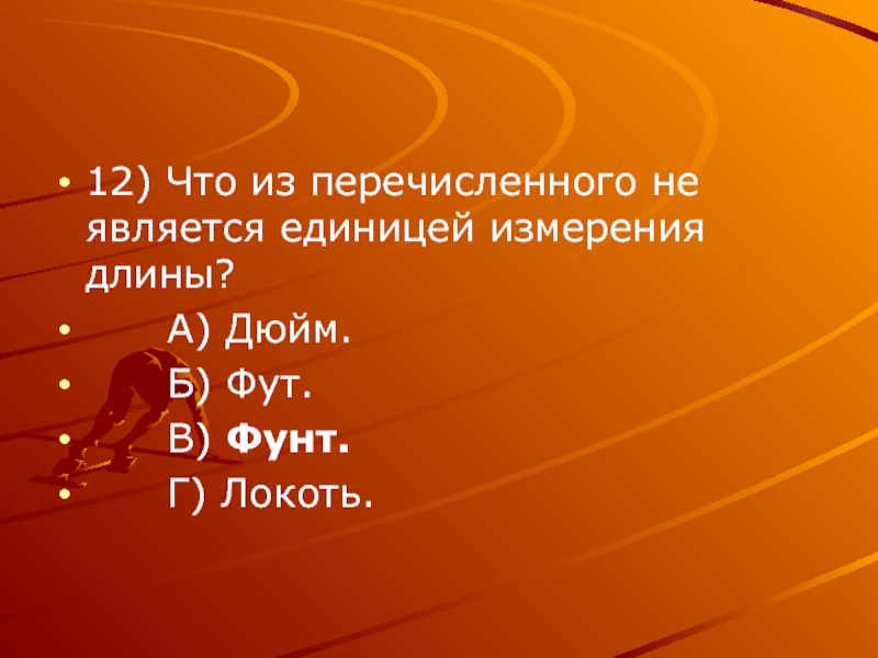Слайд 1412) Что из перечисленного не является единицей измерения длины?