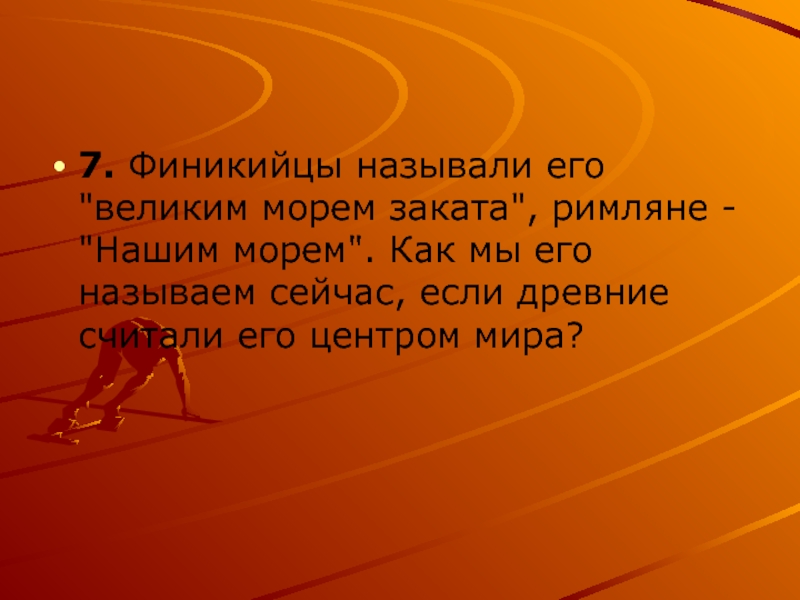 Слайд 517. Финикийцы называли его "великим морем заката", римляне - "Нашим морем".