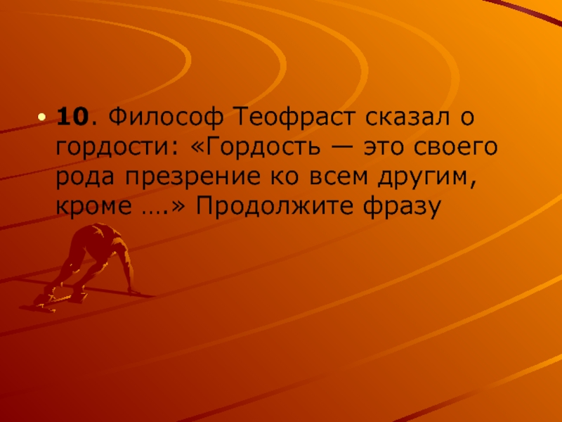 Слайд 5410. Философ Теофраст сказал о гордости: «Гордость — это своего рода