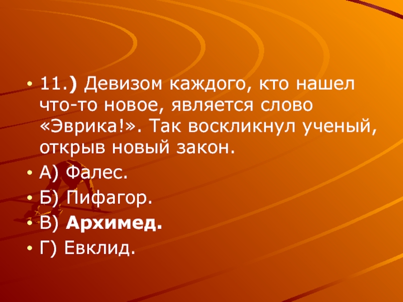 Слайд 1311.) Девизом каждого, кто нашел что-то новое, является слово «Эврика!». Так