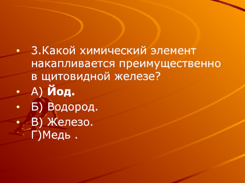 Слайд 53.Какой химический элемент накапливается преимущественно в щитовидной железе?