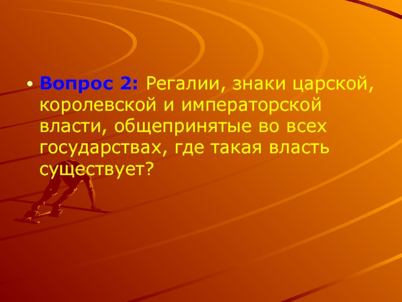 Слайд 37Вопрос 2: Регалии, знаки царской, королевской и императорской власти, общепринятые во