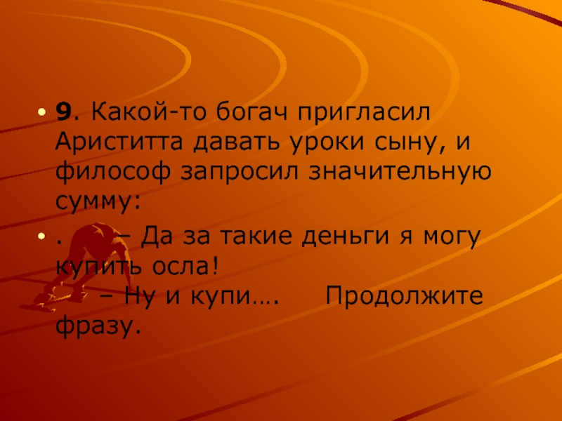 Слайд 539. Какой-то богач пригласил Ариститта давать уроки сыну, и философ запросил