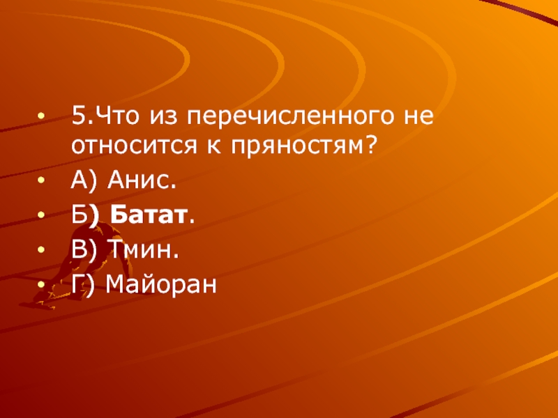 Слайд 75.Что из перечисленного не относится к пряностям?