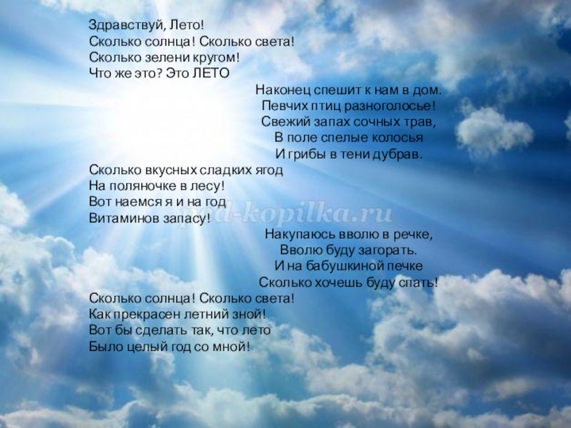– Ребята, а вы любите лето? Чем же оно замечательно?