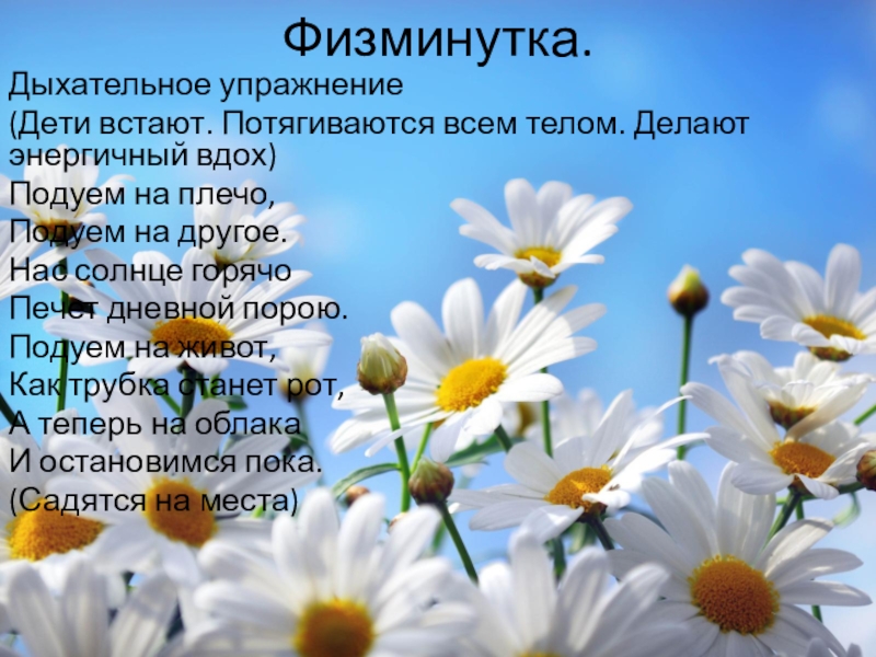 (Дети встают. Потягиваются всем телом. Делают энергичный вдох)