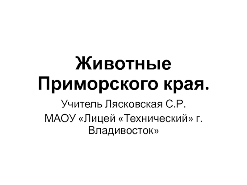 Животные Приморского края.Учитель Лясковская С.Р.МАОУ «Лицей «Технический» г.Владивосток»