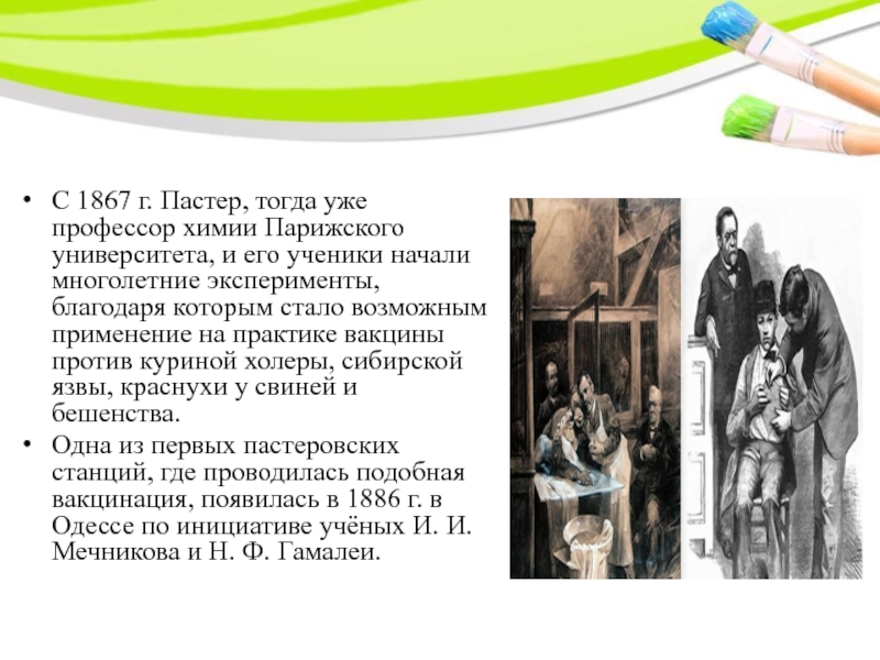 Слайд 7С 1867 г. Пастер, тогда уже профессор химии Парижского университета, и