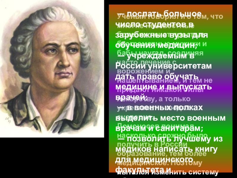 Русской православной церкви, писателя и ученого, никогда не был религиозным фанатиком. Он пытался через святое писание получить знания, которых жаждал. Потому он следовал разуму и не верил слепо в порой невежественные указания требника. Итак, о болезнях и повреждениях, от суеверия и упрямства исходящих.