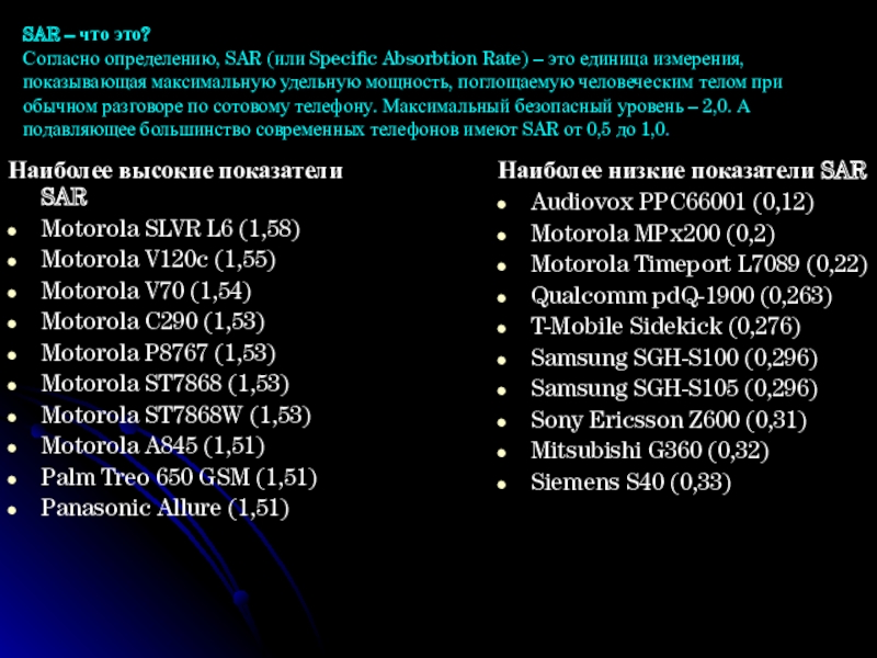 Наиболее низкие показатели SAR