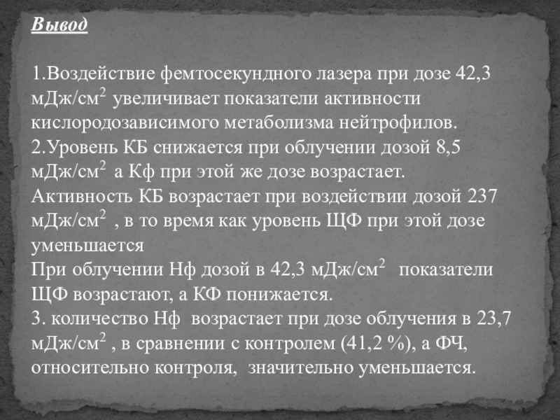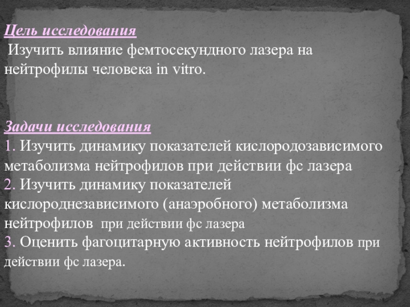 Облучение нейтрофилов фемтосекундным лазером осуществлялось in vitro— это технология выполнения экспериментов, когда опыты проводятся в пробирке, либо, в более общем смысле, вне живого организма.