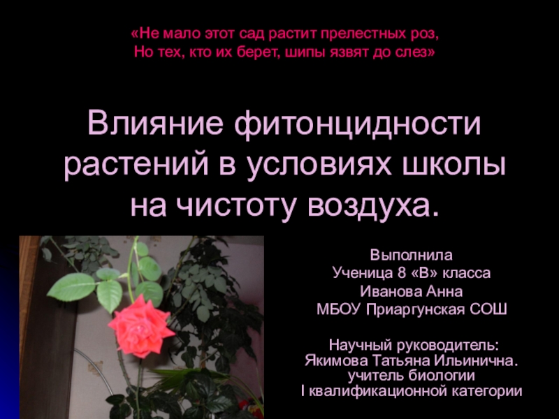 Научный руководитель: Якимова Татьяна Ильинична. учитель биологии I квалификационной категории