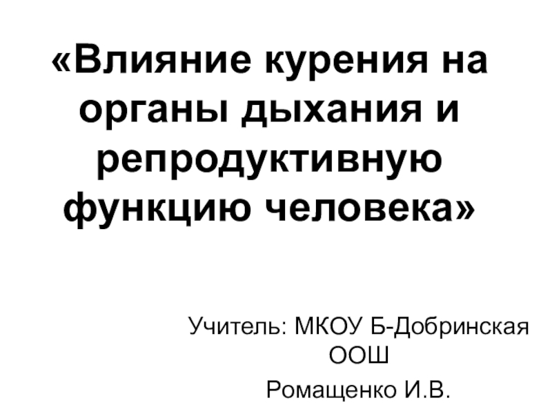Слайд 1«Влияние курения на органы дыхания и репродуктивную функцию человека»