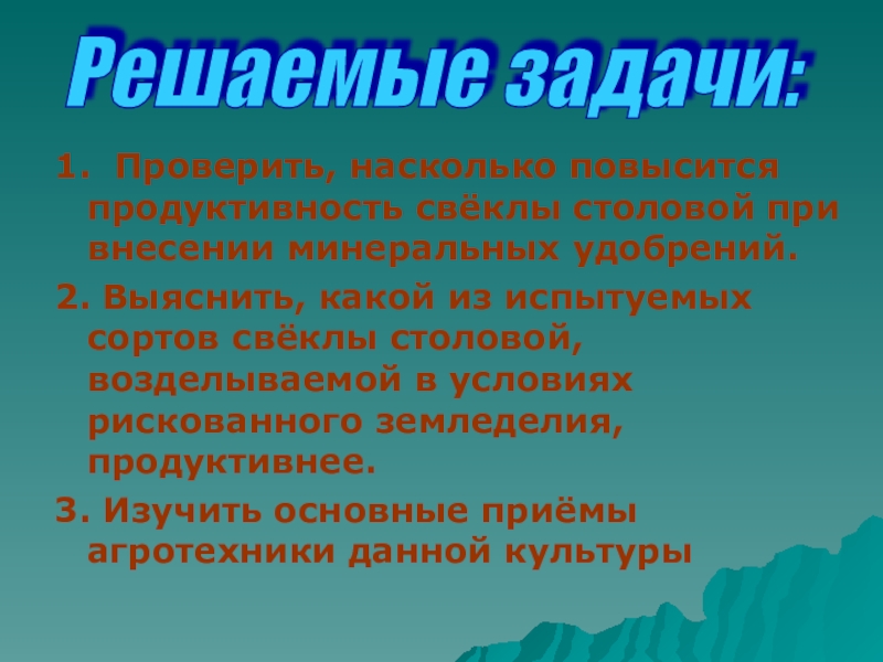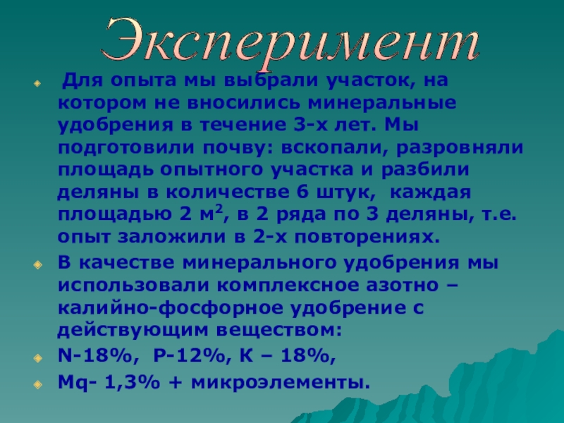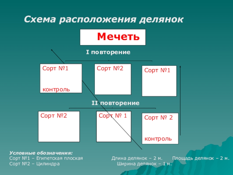 Сорт №1 – Египетская плоская Длина делянок – 2 м. Площадь делянок – 2 м.