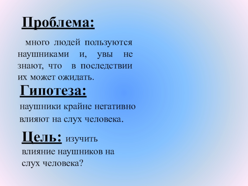 Цель: изучить влияние наушников на слух человека?