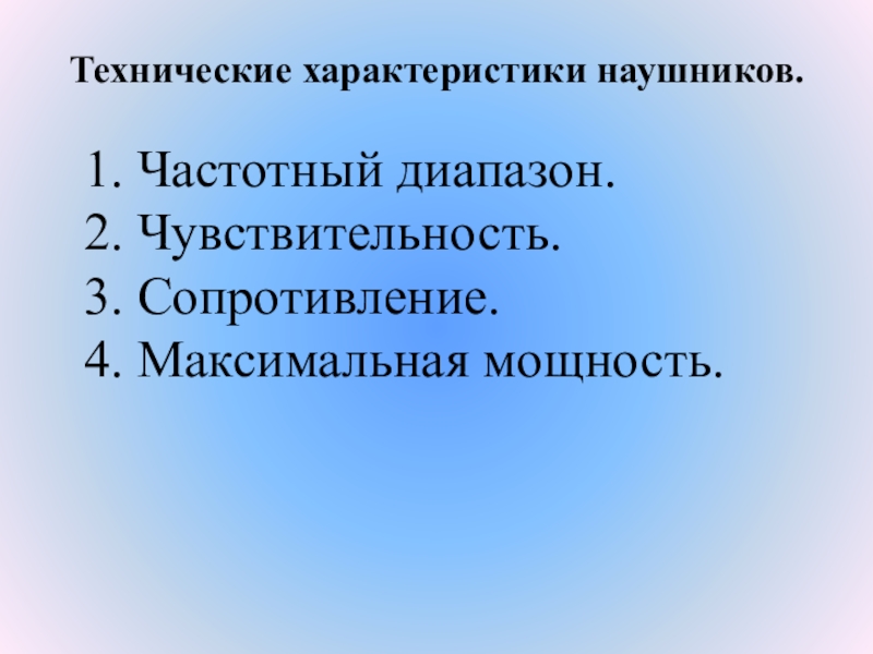 Технические характеристики наушников.