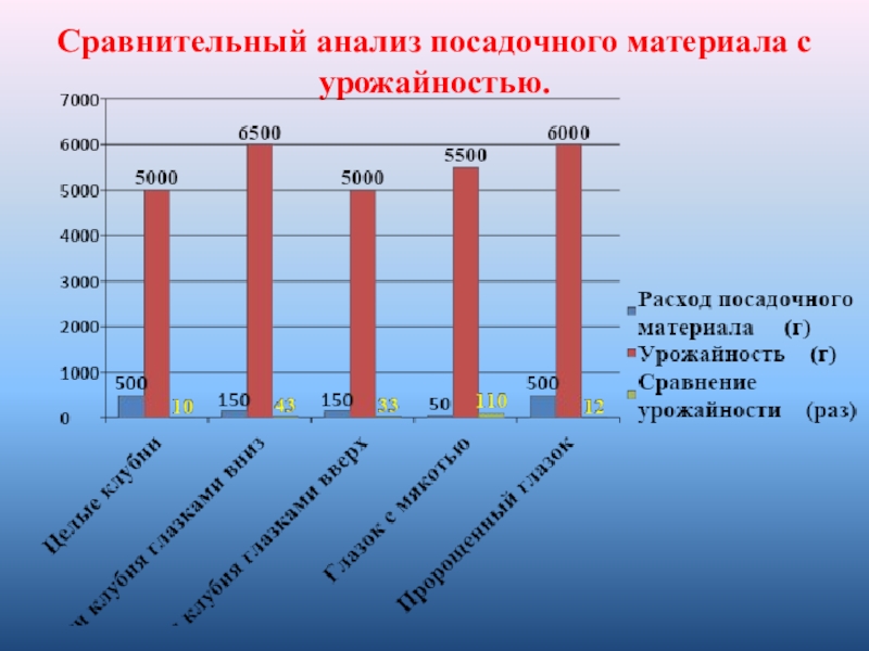 Слайд 20Сравнительный анализ посадочного материала с урожайностью.