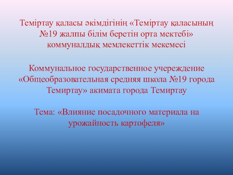 Слайд 1Теміртау қаласы әкімдігінің «Теміртау қаласының №19 жалпы білім беретін орта мектебі»