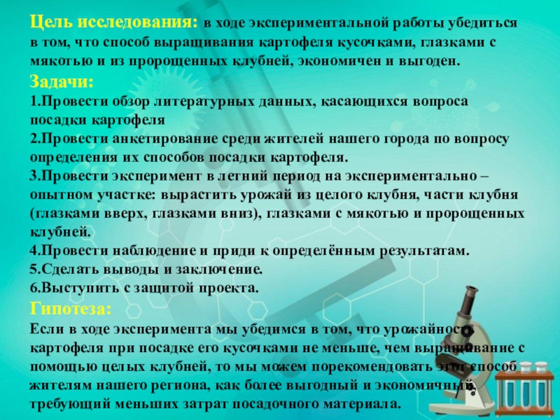 Тема: «Влияние посадочного материала на урожайность картофеля»