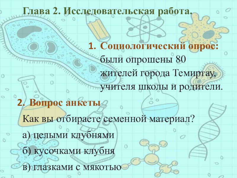 2.Провести анкетирование среди жителей нашего города по вопросу определения их способов посадки картофеля.