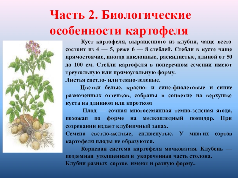 Слайд 9 Часть 2. Биологические особенности картофеля