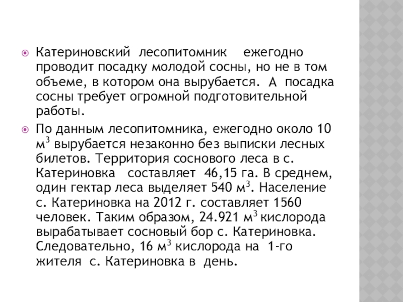 Слайд 17Катериновский лесопитомник ежегодно проводит посадку молодой сосны, но не в