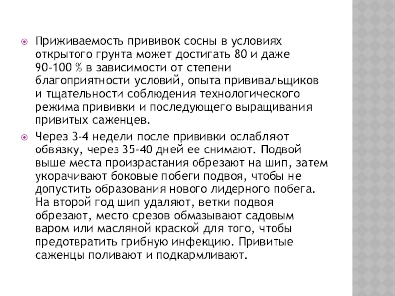 Слайд 14Приживаемость прививок сосны в условиях открытого грунта может достигать 80 и