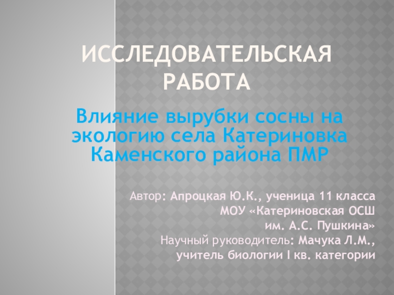 Влияние вырубки сосны на экологию села Катериновка Каменского района ПМР