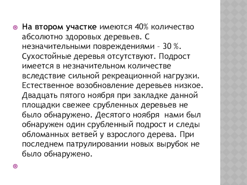 Слайд 9На втором участке имеются 40% количество абсолютно здоровых деревьев. С незначительными