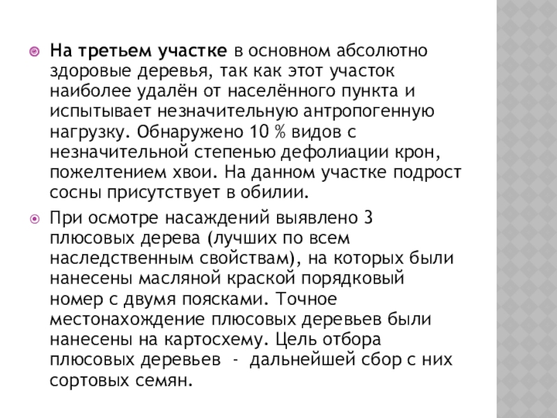 Слайд 11На третьем участке в основном абсолютно здоровые деревья, так как этот