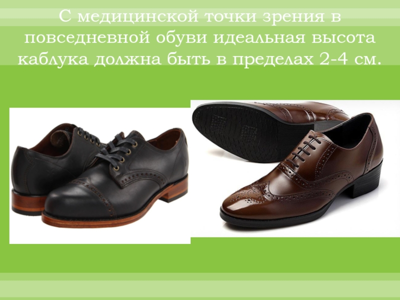 Слайд 13С медицинской точки зрения в повседневной обуви идеальная высота каблука должна