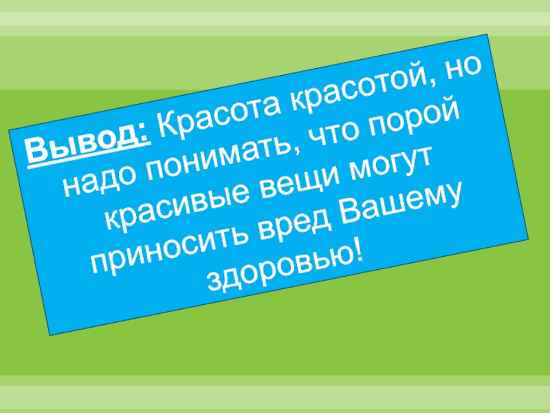 Слайд 9Вывод: Красота красотой, но надо понимать, что порой красивые вещи могут
