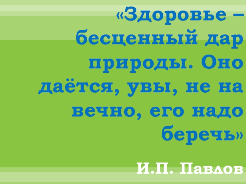 Слайд 48«Здоровье – бесценный дар природы. Оно даётся, увы, не на вечно,