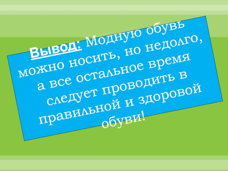 Слайд 17Вывод: Модную обувь можно носить, но недолго, а все остальное время