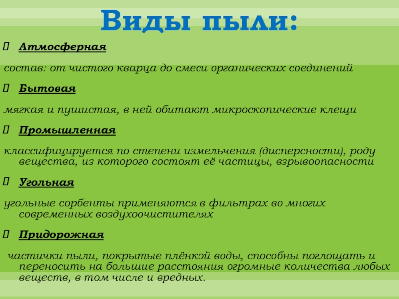 частички пыли, покрытые плёнкой воды, способны поглощать и переносить на большие расстояния огромные количества любых веществ, в том числе и вредных.