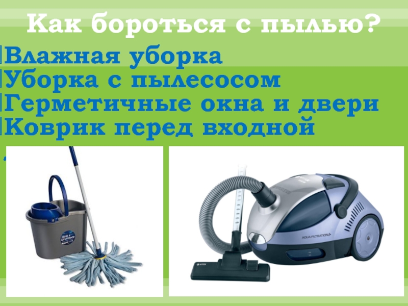 – Эффективным и простым средством борьбы с пылью является регулярная чистка «хранителей» пыли и уборка помещений.