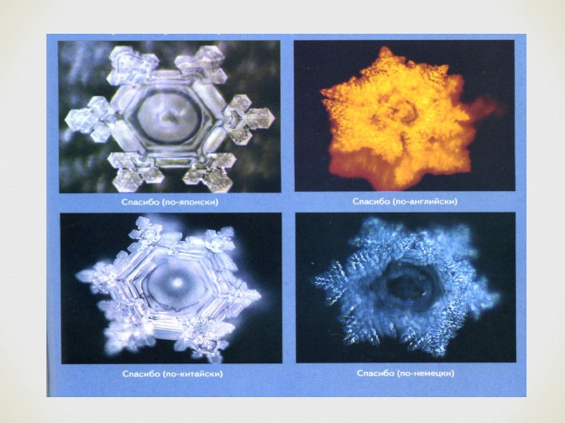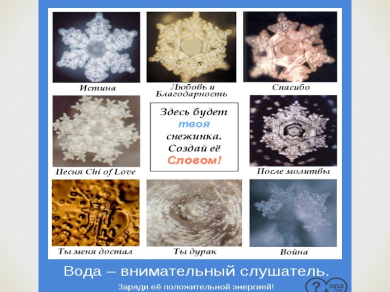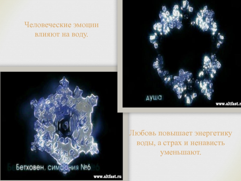 Слайд 11Человеческие эмоции влияют на воду.