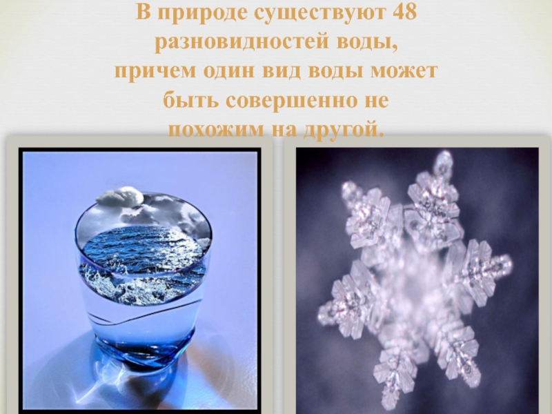 Слайд 7В природе существуют 48 разновидностей воды, причем один вид воды может