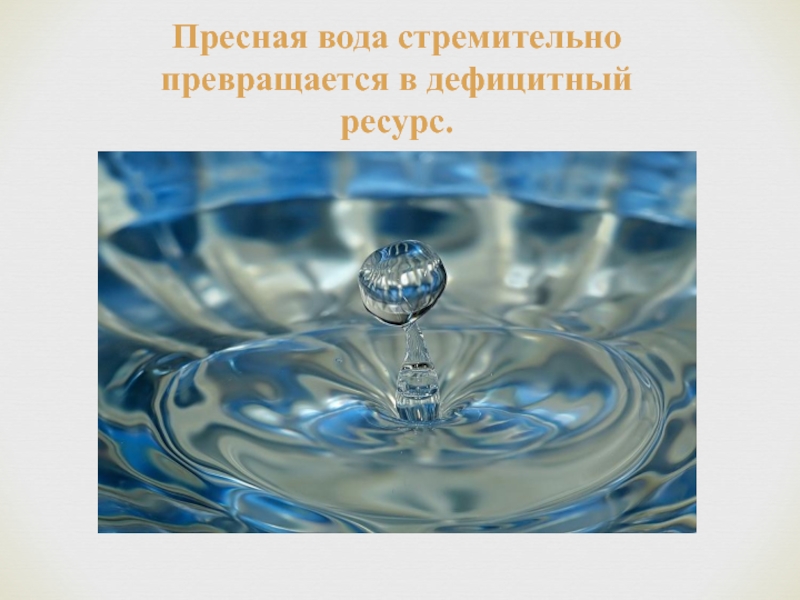 Слайд 2Пресная вода стремительно превращается в дефицитный ресурс.