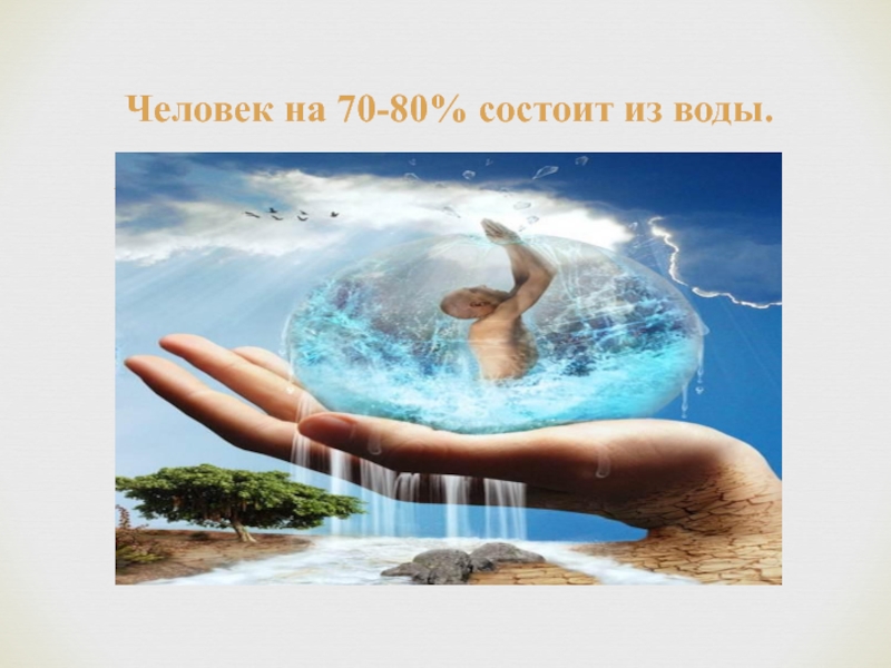 Слайд 6Человек на 70-80% состоит из воды.