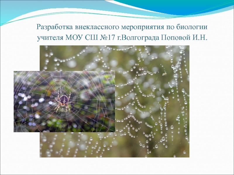Презентация, доклад на тему Внеклассное мероприятие по биологии на тему Пауки и их творение-паутина