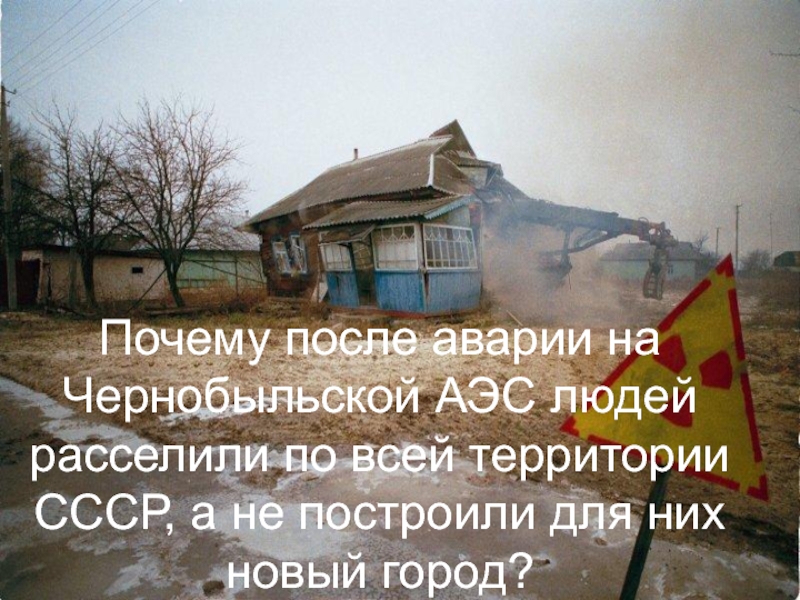 Слайд 10Почему после аварии на Чернобыльской АЭС людей расселили по всей территории