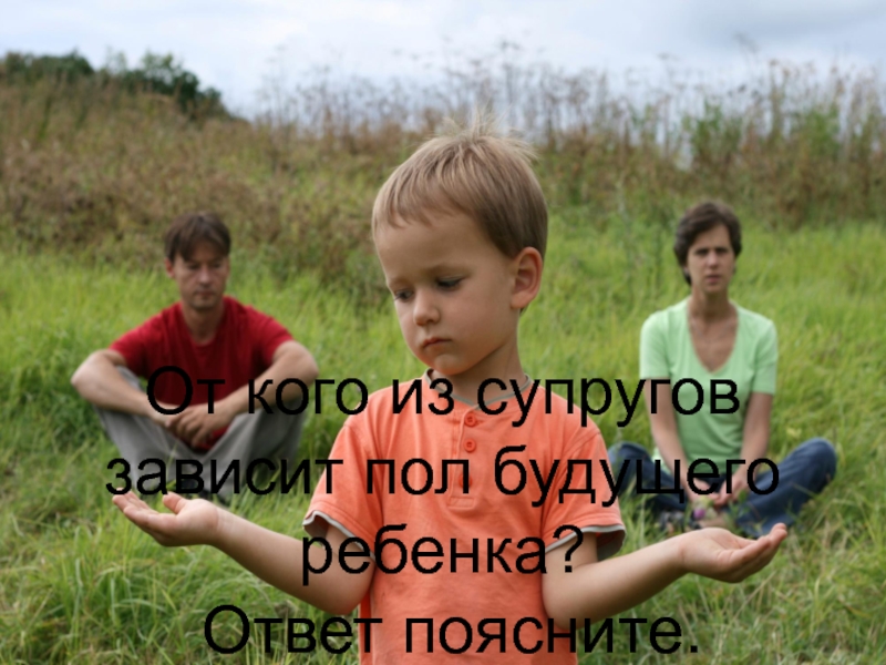 Слайд 4От кого из супругов зависит пол будущего ребенка? Ответ поясните.