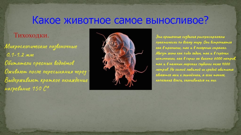 Эти крошечные создания распространены практически по всему миру. Они встречаются как в тропиках, так и в полярных странах. Могут жить как подо льдом, так и в горячих источниках, как в горах на высоте 6000 метров, так и в темных морских глубинах ниже 4000 метров. Но самой любимой их средой обитания являются мхи и лишайники, а если точнее, капельная влага, скопившаяся на них.