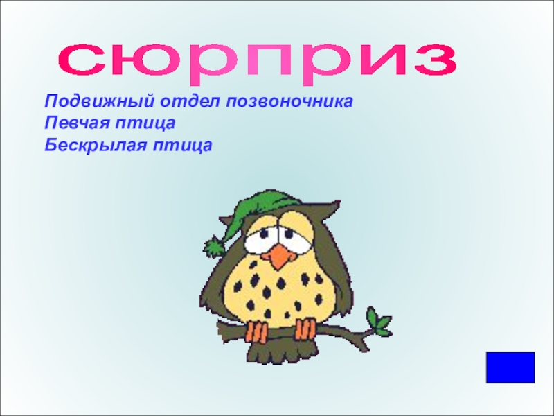 сюрприз Подвижный отдел позвоночника Певчая птицаБескрылая птица