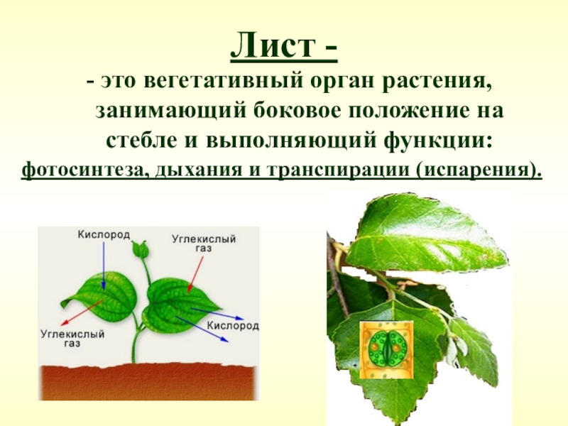 фотосинтеза, дыхания и транспирации (испарения).
