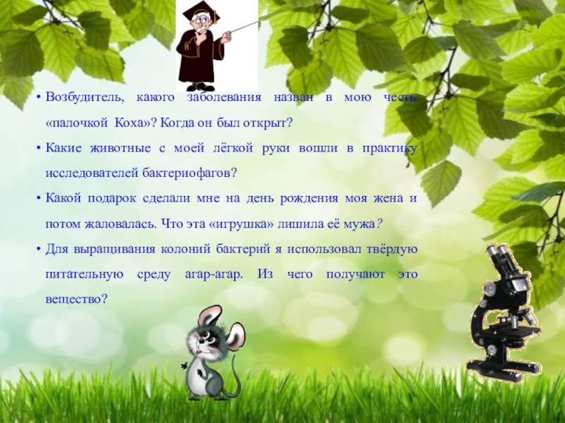 Слайд 12Возбудитель, какого заболевания назван в мою честь «палочкой Коха»? Когда он